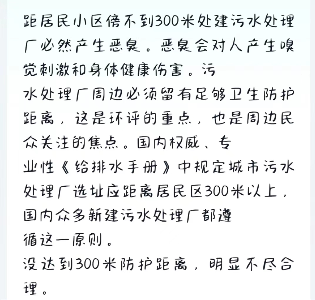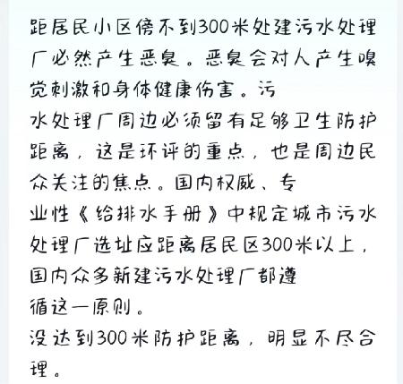 污水处理厂距离居民楼不足300米,不符合国检标准,后期会严重影响居民生活环境,请重新选址