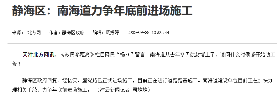2、合作示范区已责成建设单位加快推进东海道及南海道前期手续办理,待相关手续办理后将第一时间进场施工。