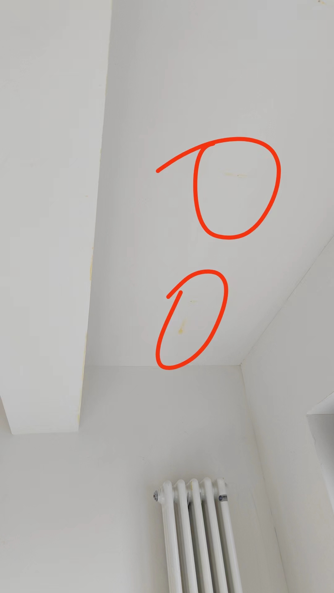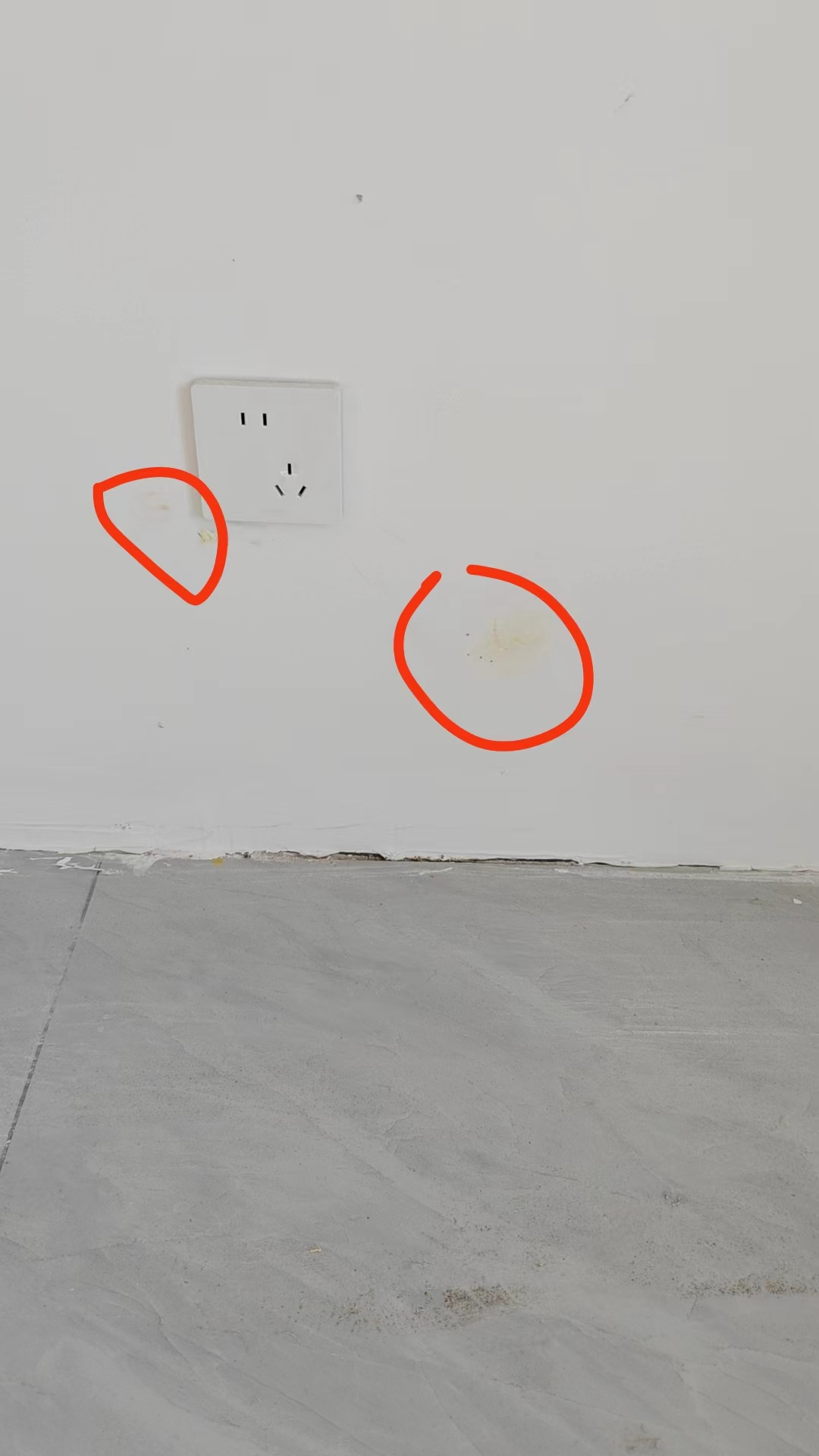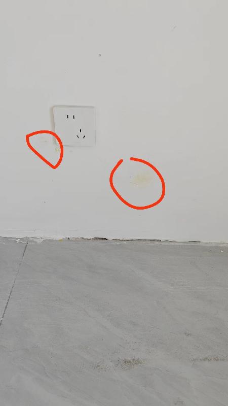 4.油工阶段装修完成后我们去新房查看装修质量有问题: 发现墙面多出巴掌大小乃至胳膊长度的黄斑,然后让他们修补但是一直不修,我们多次询问态度消极不做任何反馈