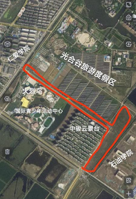 光合谷西侧为仁爱大学(在校生3万左右),东侧为石油学院及教师公寓,南侧为国际青少年中心和中骏云景台小区(作为一个3000多户的小区,竟然没有临街底商,居民生活消费十分不便)。