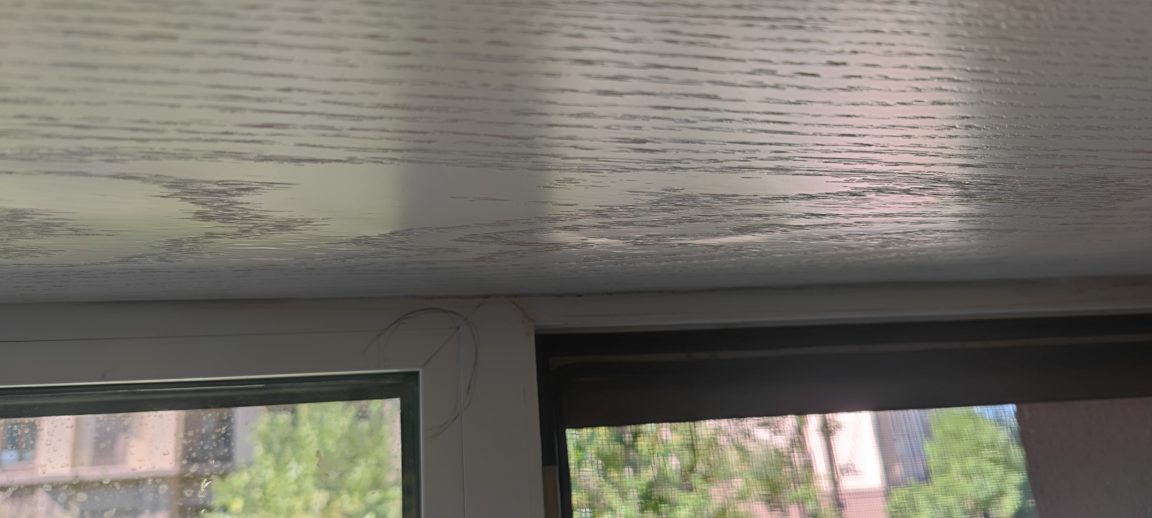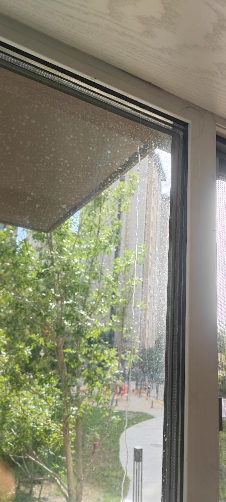 8.26下雨,发现次卧飘窗上檐和窗户胶条顺着玻璃流水,遂联系物业排查。