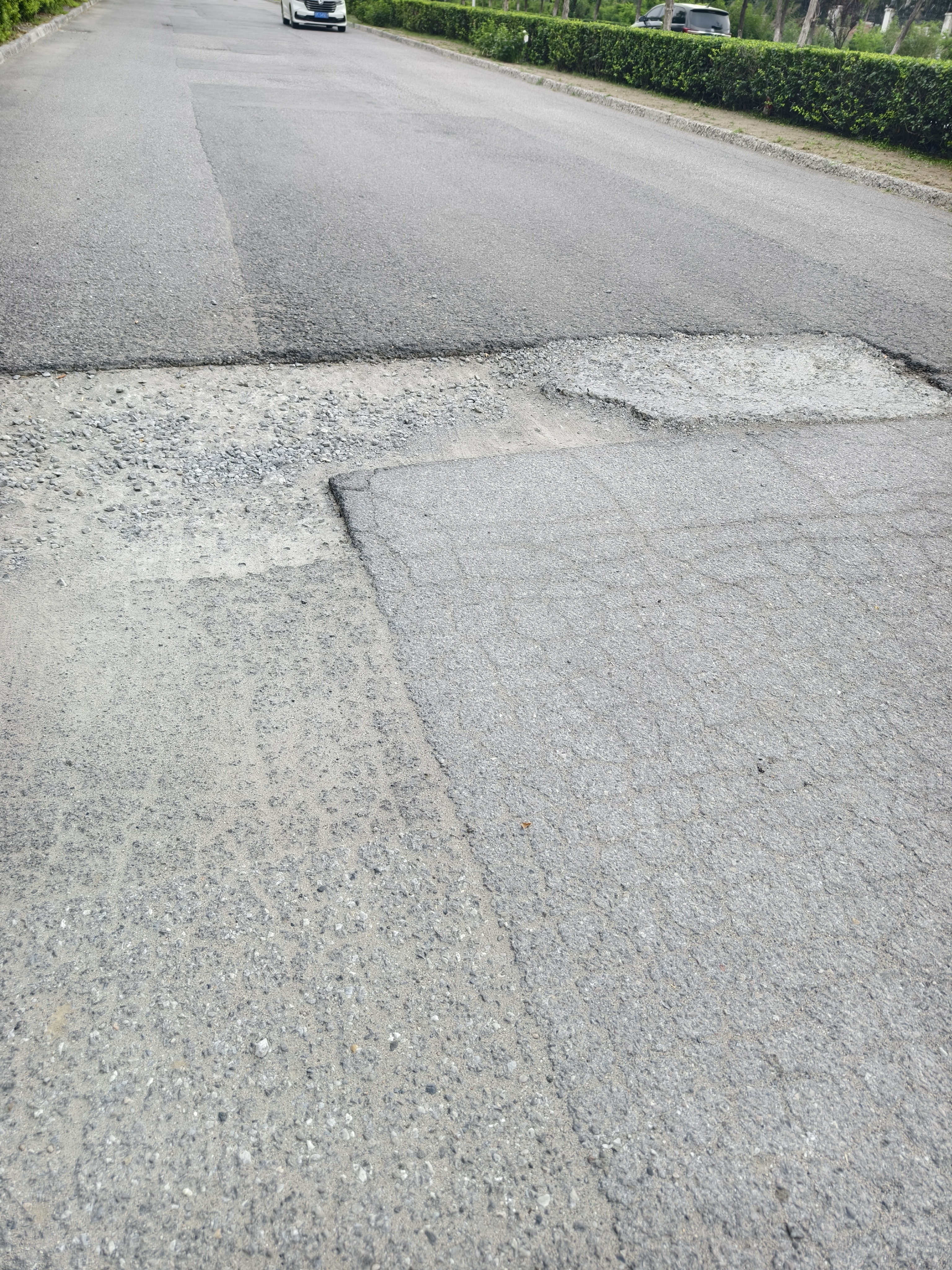 静海区团泊镇秀水路,津王路与环湖路之间,外国语附属静海学校一侧,路面存在多处大坑,路过通行车辆、接送儿童上下学车辆经过此处存在较大安全隐患,希望尽快修复。