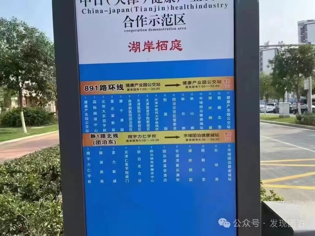 从公交站牌可见:静1路北线市域团泊健康城站开往翔宇力仁学校方向,末班车时间为20:30。