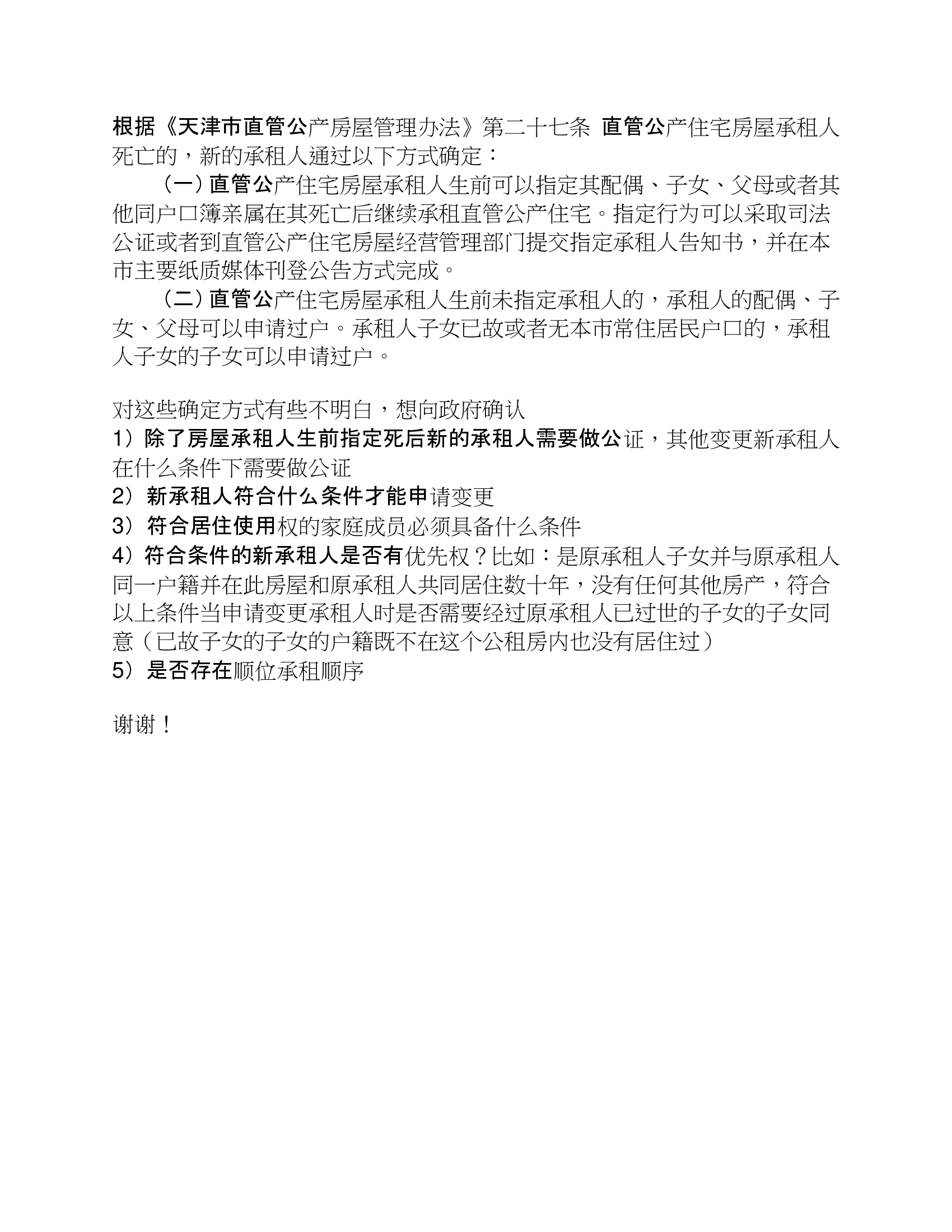 标题:关于直管公产房承租人去世,变更新的承租人政策咨询