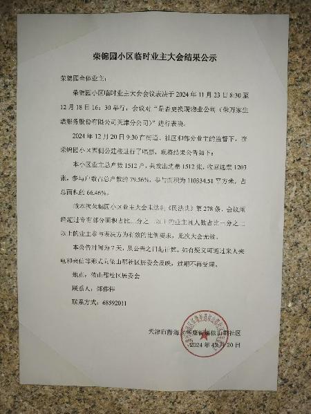 我是荣锦园小区的业主,关于本小区11月份至12月份的业主大会投票,广大业主有诸多的质疑和不满,对此,华康街道表示:业主们提及的几项重要问题已超越了他们的职能权限,他们无法处理!故邀请静海区住建委物业办王主任于2025年1月3日,到华康街道办亲自主持业主见面会,接待了诸多业主代表。