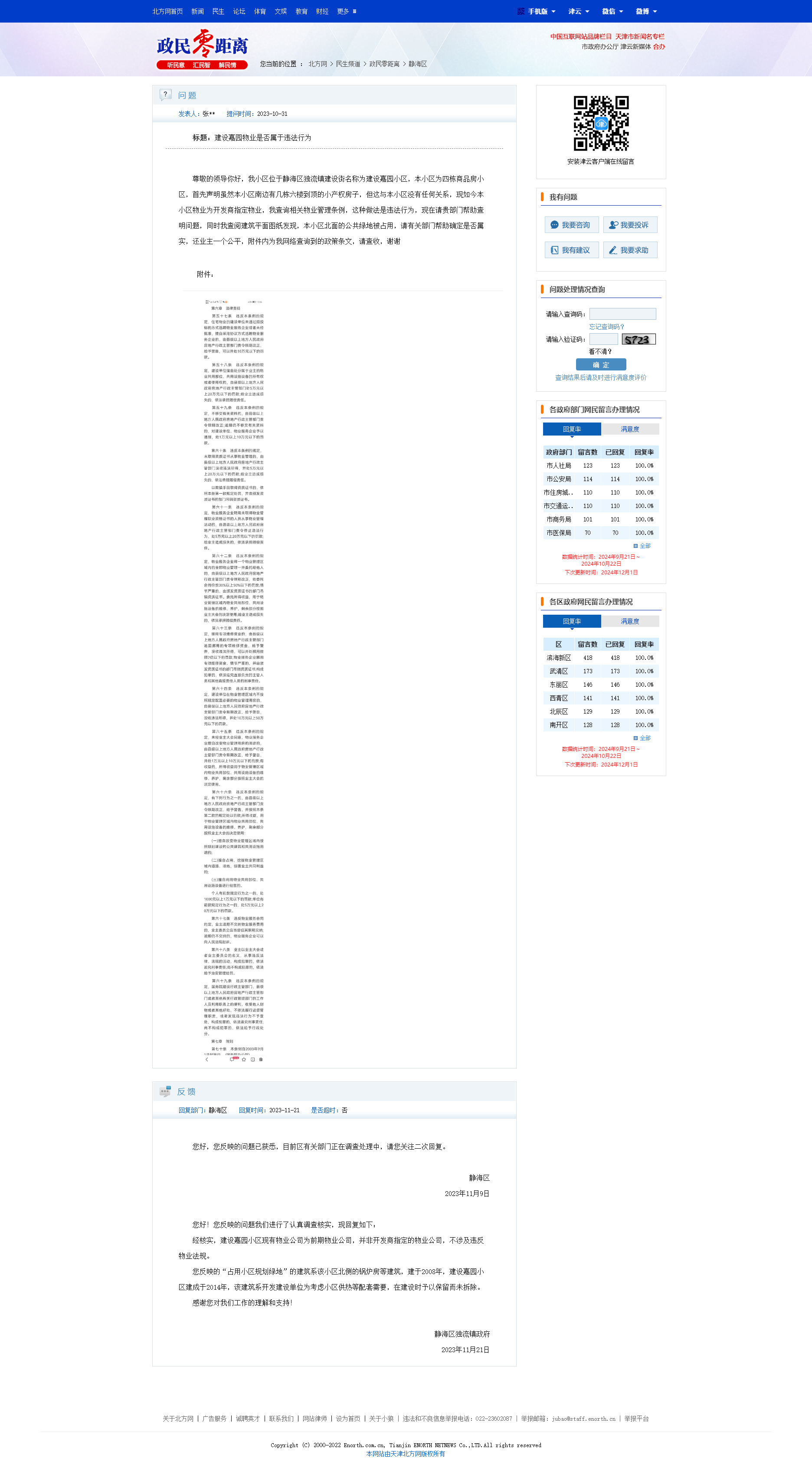 本小区自建成业主入住以来水费为每吨2.2元,属于井水,直到2020年本小区被装了一块总水表后价格上涨到4.9元,而水质依然是井水,试问一块总表就可以将价格翻倍上涨是如何道理呢?小区业主多次反应,且市民零距离记者于2023年暗访报道后,才承诺更换管路介入自来水,独流镇的井水因为碱性大所以手感滑腻,而自来水则是相反,现如今水质依然滑腻,这样如何能证明小区业主用的是自来水呢,并且现如今的自来水只能在小区所谓的物业那里购买,给出的解释是如果在网上买水就需要更换管道,商品房的竣工验收标准难道低于自来水公司所执行的标准吗,不然为什么要更换管道呢?