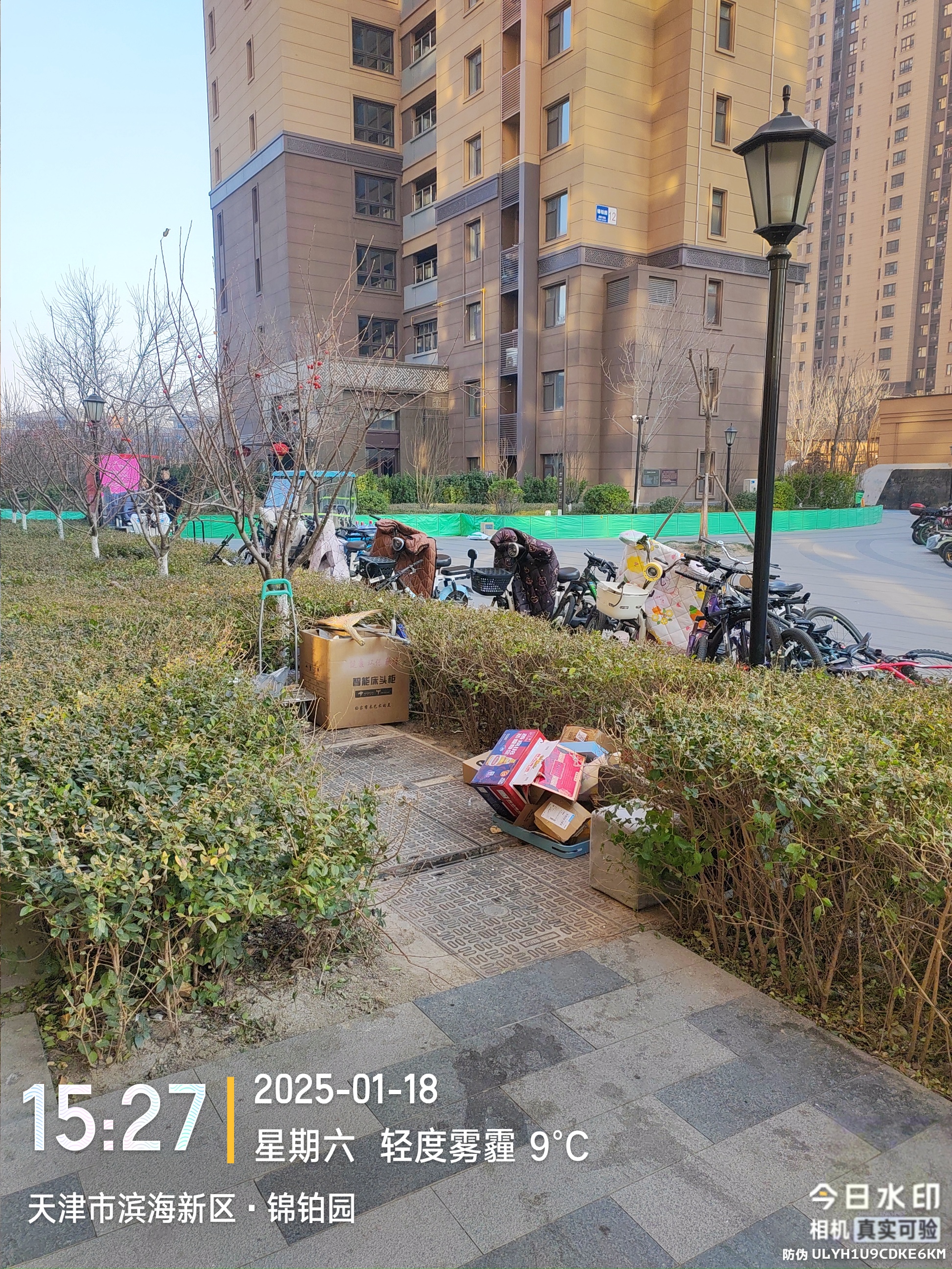 中新生态城锦铂园小区11号楼南侧长年堆放废品及其他占到物品无人治理.
