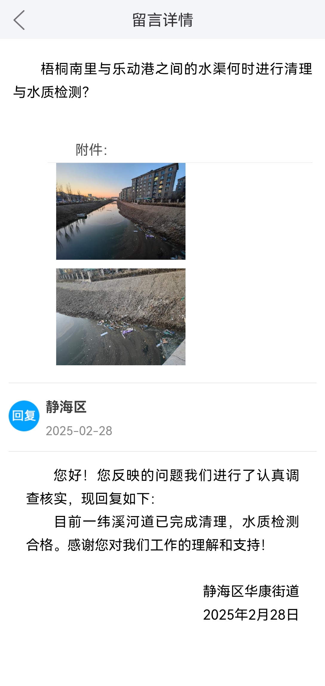 标题:不认可华康街道对一纬溪水质的回复