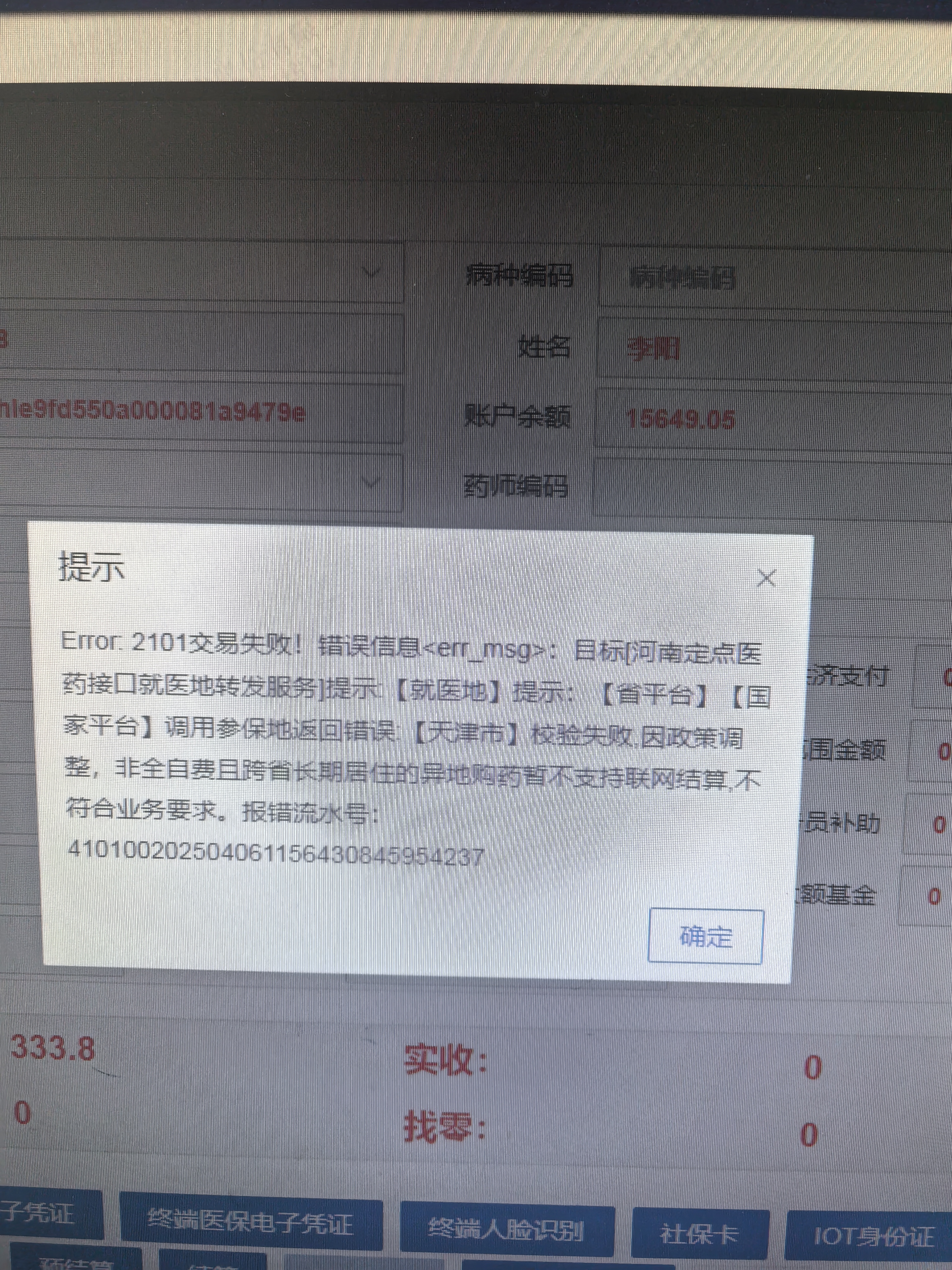 本人已进行异地就医备案,但无法使用医保进行异地购药,系统提示:“Error: 2101交易失败!错误信息<err_msg>:目标[河南定点医药接口就医地转发服务]提示【就医地】提示:【省平台】【国家平台】调用参保地返回错误:【天津市】校验失败,因政策调整,非全自费且跨省长期居住的异地购药暂不支持联网结算,不符合业务要求。报错流水号:410100202504061156430845954237”。请解决相关问题,并告知后续异地就医注意事项。