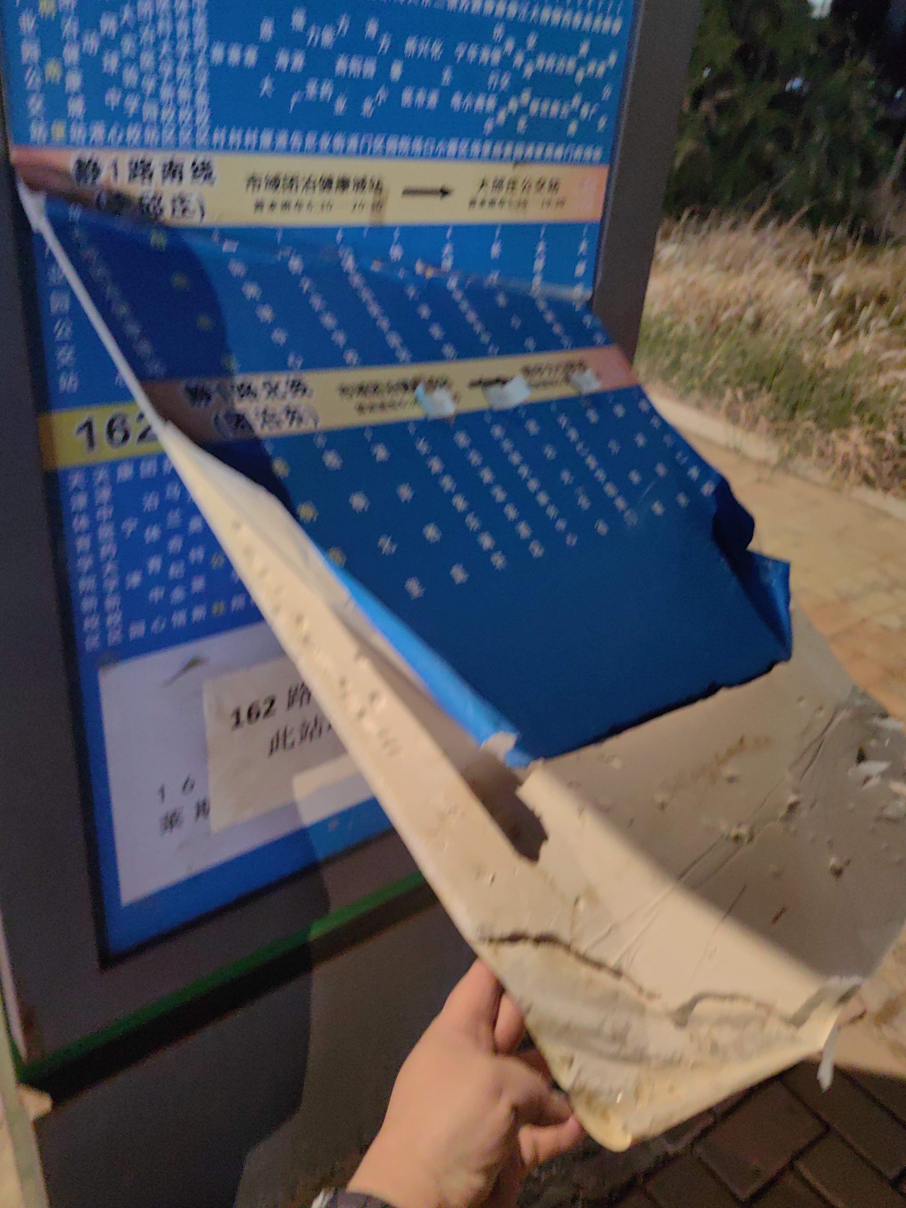 您好!您反映的问题我们进行了认真调查核实,现回复如下: 华康街道已组织现场核查并联系相关维护部门开展维修,目前,损坏的站牌已更换完毕。 感谢您对我们工作的理解和支持!