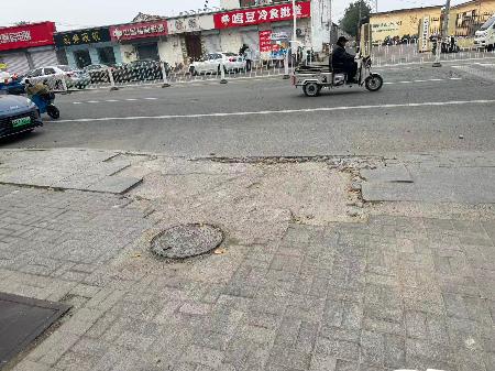 请帮忙让有关部门修一下路面吧,出进车辆导致路面损坏,有安全隐患
