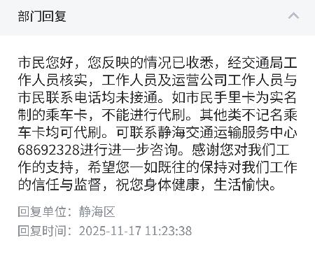 静海公交192刷卡问题192卡机不能代人刷卡一次只能一个别的190、191、193都行二维码也能代打为什么就192不能卡代打 卡是一卡通发的交联卡 不存在之前回复的实名卡问题