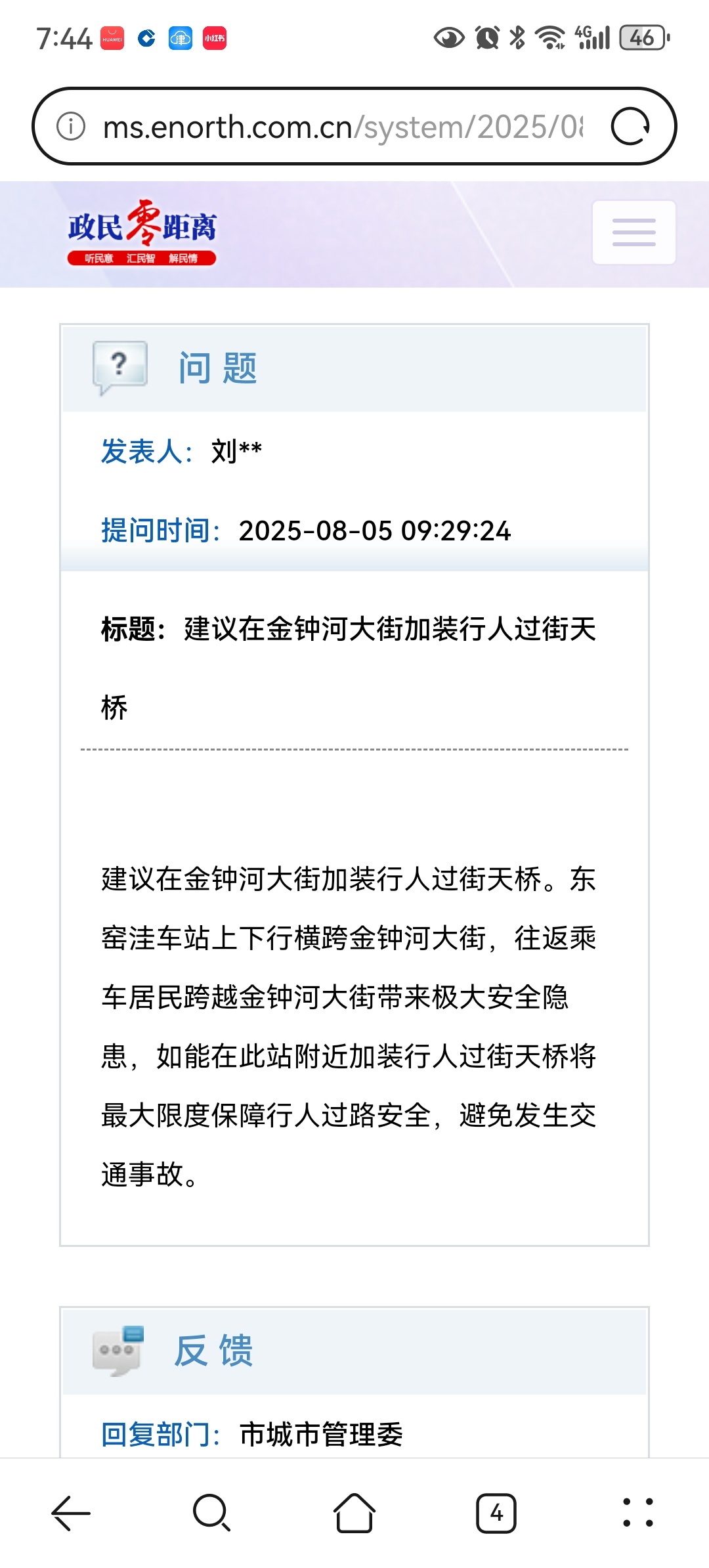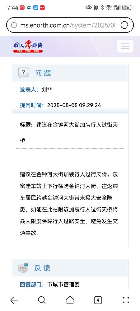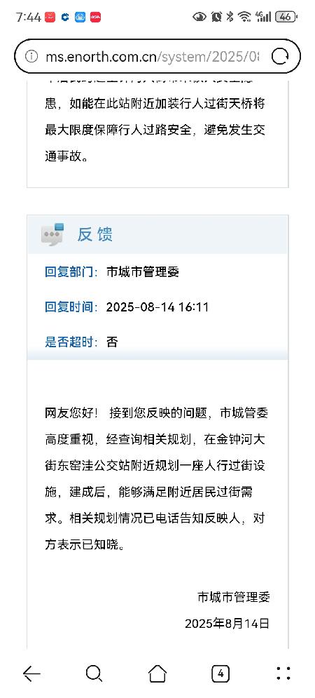 东窑洼公交站上下行车站,位于金钟河大街两侧,两个站点间无法通行,需绕行金钟河大街地铁站十字路口,全程约一点五公里,看到之前有人发帖说规划有过街天桥设施,请问何时开始建设?