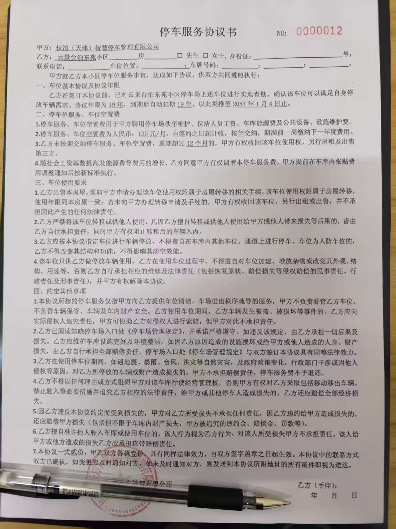 2、地库管理方,技泊要求业主签署包含权利义务不对等条款的管理协议并缴费,否则无法停车