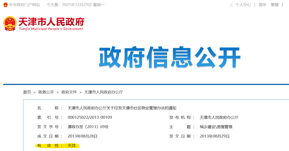在天津市人民政府网站,政府公开->政府文件->天津市人民政府办公厅->政府信息公开中,《天津市人民政府办公厅关于印发天津市社区物业管理办法的通知》已失效,但是最新的《天津市社区物业管理办法》没有在该网站上进行公开,现申请公开,谢谢