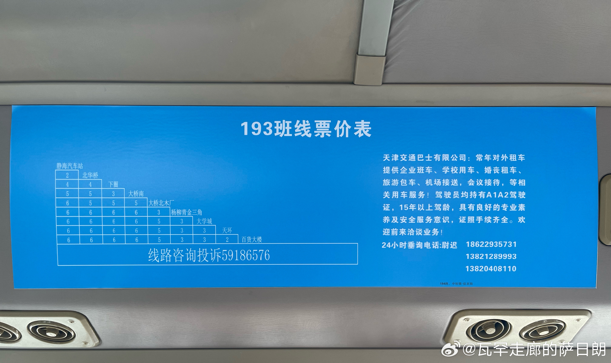 193这车班次过少 当初给交通局报的时候不是定点 恶意减少班次 今早上看了 百货大楼头班直接提前发 给点干嘛用的 之前多次观察 直接脱下午班 这是让人坐吗 之前坐津c20065 直接不分段计 上车就是6 不是6的也找人要6 那当初怎么报的 也没有报站 干嘛吃的 之前说什么没有站牌 这车根本就没安 之前65那就没有 20100也没有 交通局什么时候安排上呢