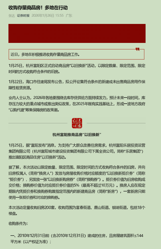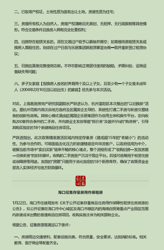据报道,近日杭州某区启动小规模“以旧换新”活动收购复核条件的旧房,见附件