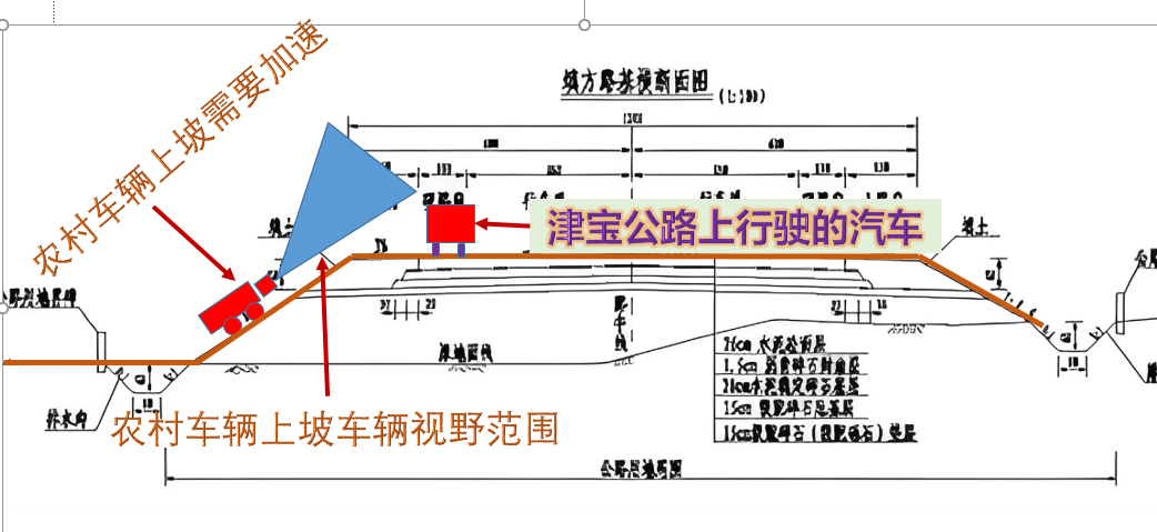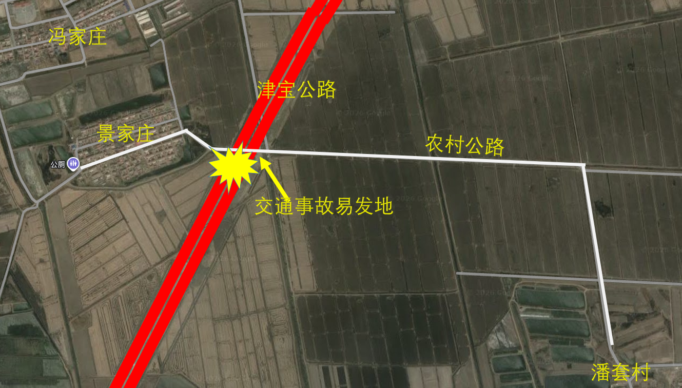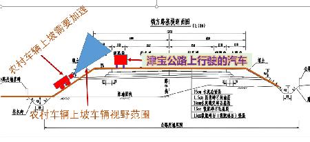 位于宝坻区尔王庄镇潘套村与景家庄村交界附近津宝公路与农村公路交接地点(详见事故发生位置图),设计极其不合理。津宝公路路基比农村公路高大约1米多,农村公路驾驶的车辆通过津宝公路时需要加速,但是车辆上坡存在视野盲区,不能及时发现津宝公路上行驶的车辆,津宝公路上行驶的车辆也不能看到位于路基以下的农村公路的车辆,农村公路的汽车又在加速上坡,极易发生交通事故(详见设计不合理存在盲区图)。目前我村村民(潘套村)已在该处发生多起交通事故,并造成死亡和重伤事件,给家庭和社会造成了极大的伤害。请领导能予以重视,追溯该公路建设、设计和审批单位责任,对该处安全隐患及时整改(建议设置涵洞),保障人民群众生命财产安全。