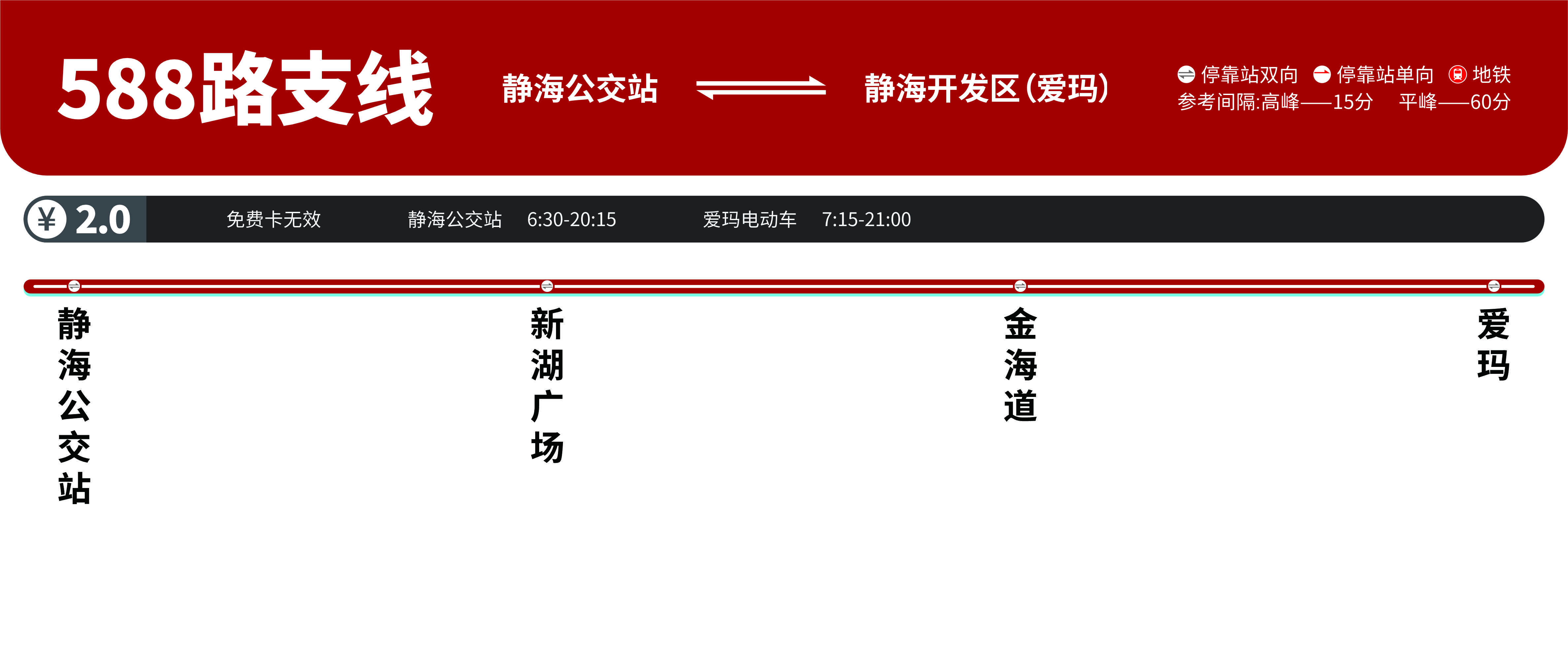 8.581、2、3夜班 站牌信息是冬平园等始发,时间还是静海公交站发,只不过不绕行开发区了,建议夜班站牌更新时加上禹州尊府 新湖该,静海公交站的信息。同时及时更换车里途径线路图信息 目前车里还都是老的,及时修复静海车队运营车路牌吧,581、2没几个好的