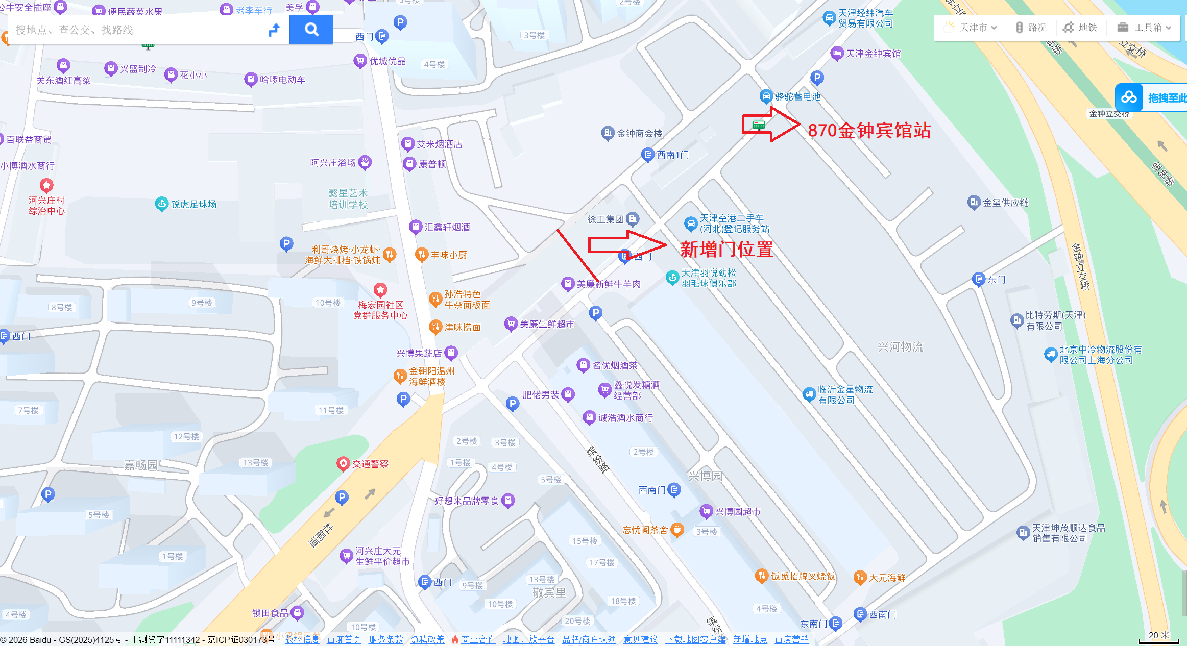 公交870路金钟宾馆总站设置于兴河物流园内,位于河北区兴博园小区附近居民,原来可以通过物流园直接通行至金钟宾馆站,后物流园在通行必经道路设置门岗及阻拦门禁,导致附近居民无法到达金钟宾馆公交站乘车,造成极大不便,且门卫人员不予配合开门通行。望相关部门领导能予以协调解决。